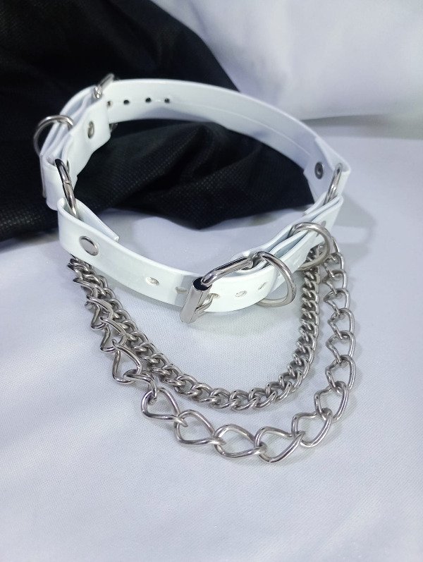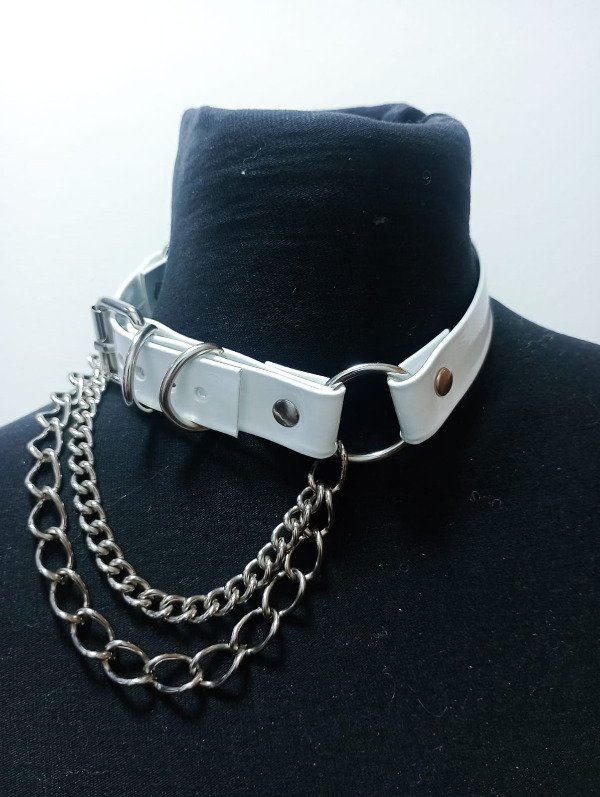 Choker de cadenas y aros a los costados, se puede ajustar en dos lugares.
